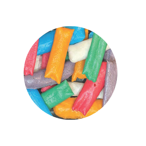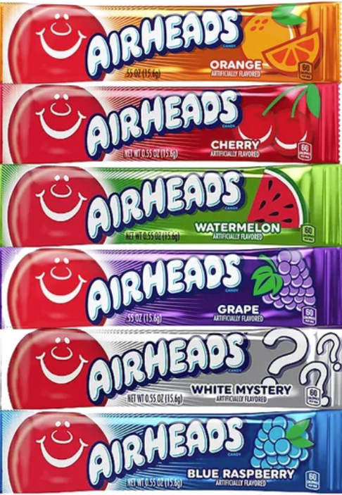 Don’t be an airhead trying to guess which candy this is! We like to be creative with packaging these – sometimes you’ll get small bites, sometimes large bites and sometimes full sticks. Always at least one full stick of each color in the bag.